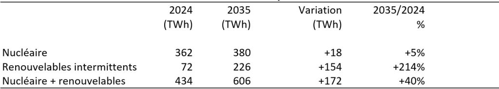 Le texte parfois, et les commentaires souvent, disent que la PPE s’appuie à la fois sur le développement du nucléaire et du renouvelable. Les chiffres du tableau 1 montrent qu’il n’en est rien. Pour le nucléaire, la PPE3 ne programme pratiquement aucune augmentation d’ici 2035 Pour le renouvelable, elle programme une augmentation de 214%, c’est-à-dire une multiplication par plus de 3 d’ici 2035. La justification par la décarbonation est une mauvaise plaisanterie : les deux sources d’électricité sont également décarbonées. La PPE3 reflète essentiellement l’attitude idéologique anti-nucléaire et pro-renouvelables qui a longtemps dominé la vie intellectuelle et politique française. Elle était clairement exprimée dans la PPE2, (préparée par M. Lecornu) qui « décidait » explicitement la fermeture de 14 centrales nucléaires entre 2018 et 2035. Elle est de nouveau exprimée dans la PPE3 (également voulue par M. Lecornu). Cette attitude anti-nucléaire a reculé récemment, mais elle reste très importante. La seule concession faite dans la PPE3 à ce recul est l’élimination de la référence à la fermeture de ces 14 centrales. Il n’est cependant pas très sérieux de présenter l’élimination du mot « fermeture » comme un pas majeur dans le recours au nucléaire, à égalité avec le triplement du recours aux renouvelables.