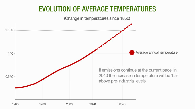 La tendance naturelle au réchauffement, puisque 1850 marque la fin du Petit Age Glaciaire, nous amène doucement vers les 15°C. Soit les 13.5°C + 1.5°C attendus pour 2030 ou 2040 (en fait personne n’en sait rien 🙂 ).